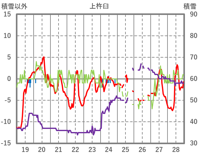 | 日 | 時 | 気温 | 降水 | 風向/風速 | 日照 | 積雪 | 降雪 |