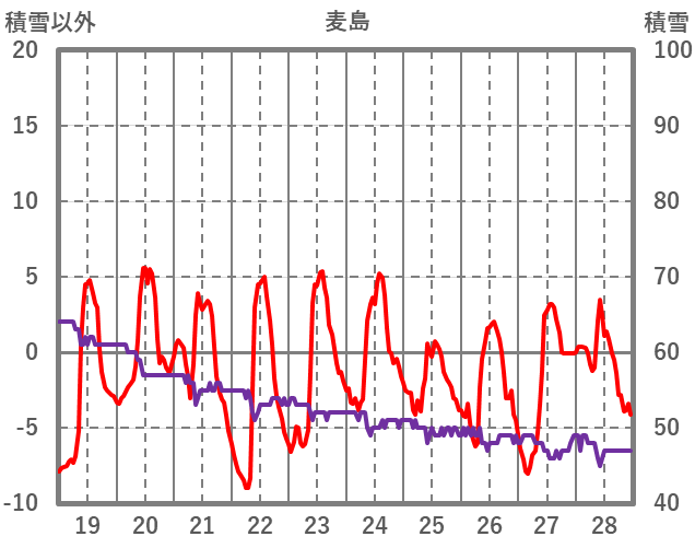 | 日 | 時 | 気温 | 降水 | 風向/風速 | 日照 | 積雪 | 降雪 |