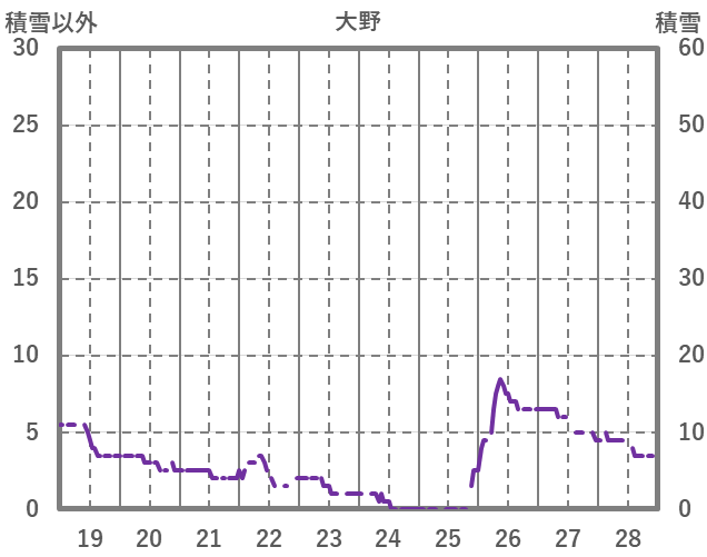 | 日 | 時 | 気温 | 降水 | 風向/風速 | 日照 | 積雪 | 降雪 |