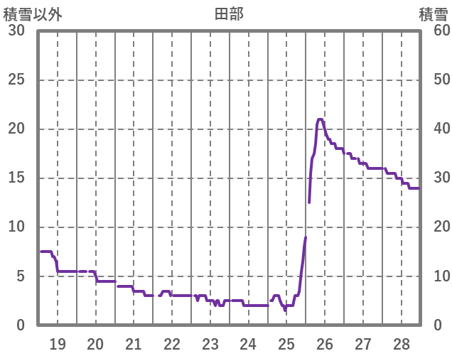 | 日 | 時 | 気温 | 降水 | 風向/風速 | 日照 | 積雪 | 降雪 |