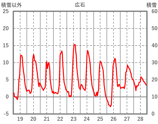 | 日 | 時 | 気温 | 降水 | 風向/風速 | 日照 | 積雪 | 降雪 |