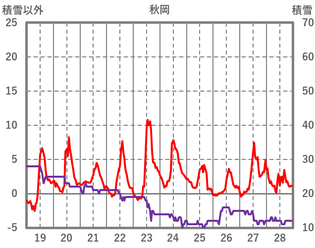 | 日 | 時 | 気温 | 降水 | 風向/風速 | 日照 | 積雪 | 降雪 |