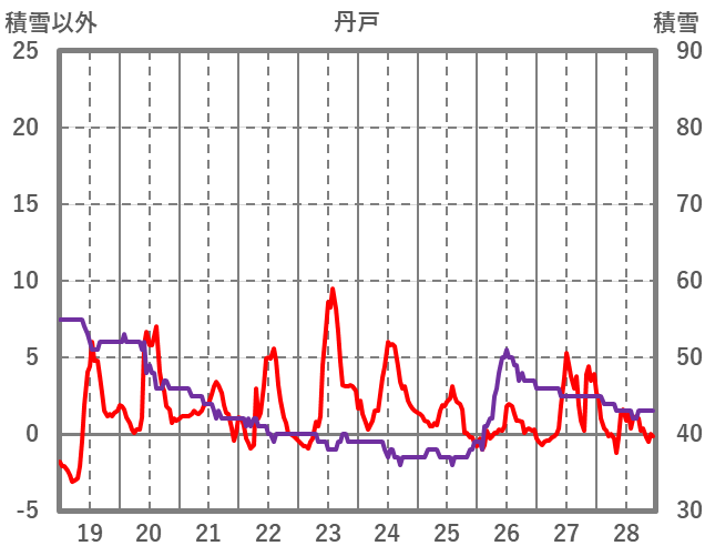 | 日 | 時 | 気温 | 降水 | 風向/風速 | 日照 | 積雪 | 降雪 |