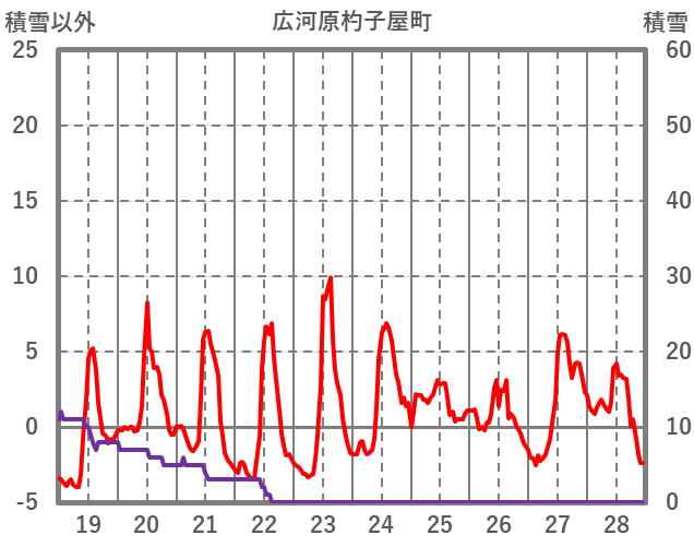 | 日 | 時 | 気温 | 降水 | 風向/風速 | 日照 | 積雪 | 降雪 |