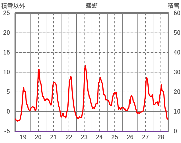 | 日 | 時 | 気温 | 降水 | 風向/風速 | 日照 | 積雪 | 降雪 |