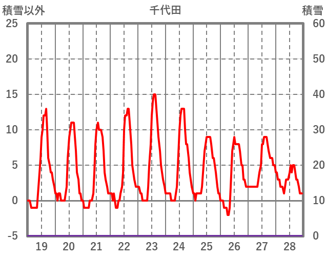 | 日 | 時 | 気温 | 降水 | 風向/風速 | 日照 | 積雪 | 降雪 |