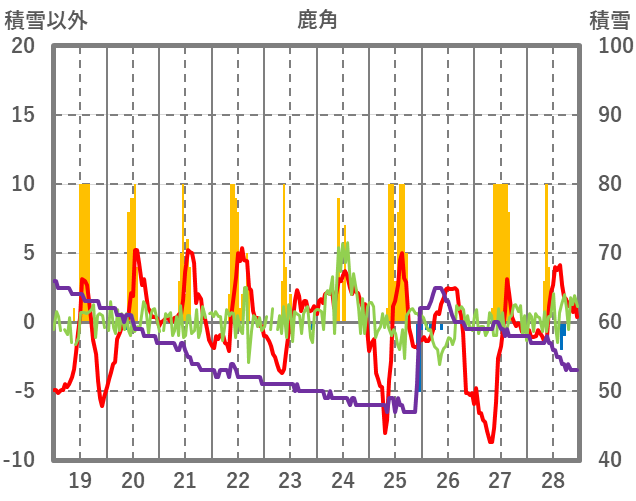 | 日 | 時 | 気温 | 降水 | 風向/風速 | 日照 | 積雪 | 降雪 |