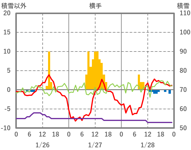 | 日 | 時 | 気温 | 降水 | 風向/風速 | 日照 | 積雪 | 降雪 |