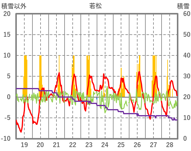 | 日 | 時 | 気温 | 降水 | 風向/風速 | 日照 | 積雪 | 降雪 |