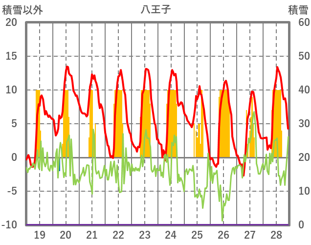 | 日 | 時 | 気温 | 降水 | 風向/風速 | 日照 | 積雪 | 降雪 |