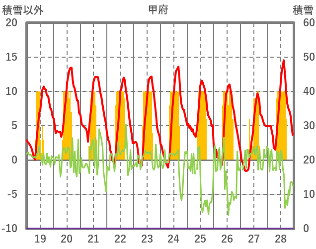 | 日 | 時 | 気温 | 降水 | 風向/風速 | 日照 | 積雪 | 降雪 |