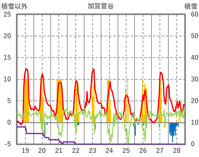 | 日 | 時 | 気温 | 降水 | 風向/風速 | 日照 | 積雪 | 降雪 |
