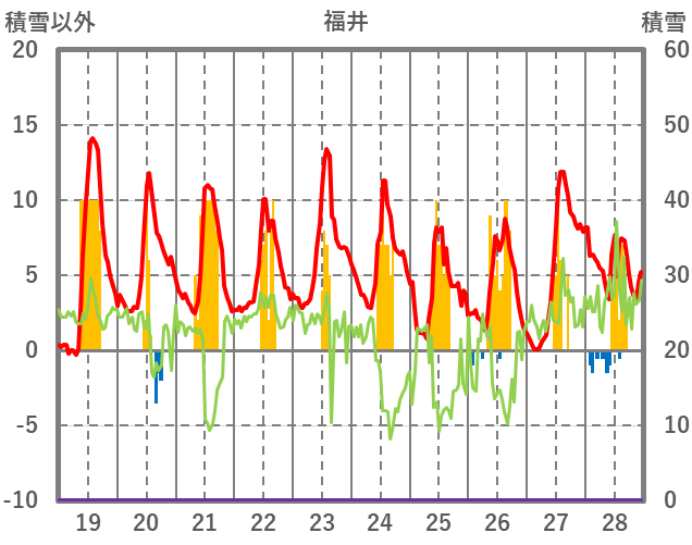 | 日 | 時 | 気温 | 降水 | 風向/風速 | 日照 | 積雪 | 降雪 |