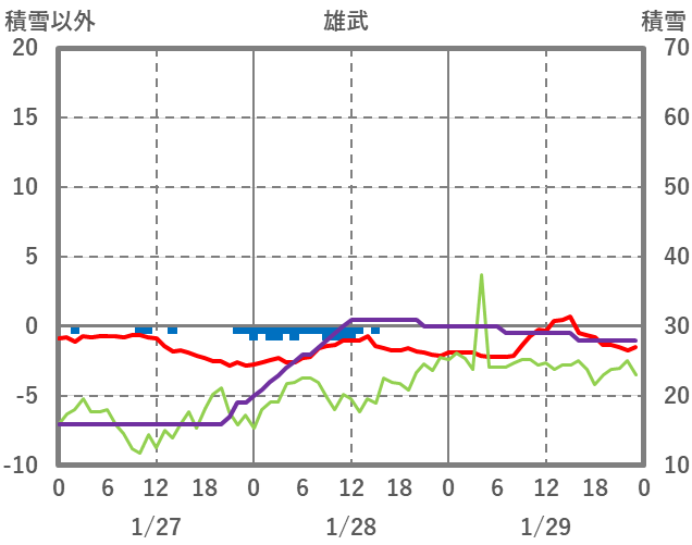 | 日 | 時 | 気温 | 降水 | 風向/風速 | 日照 | 積雪 | 降雪 |