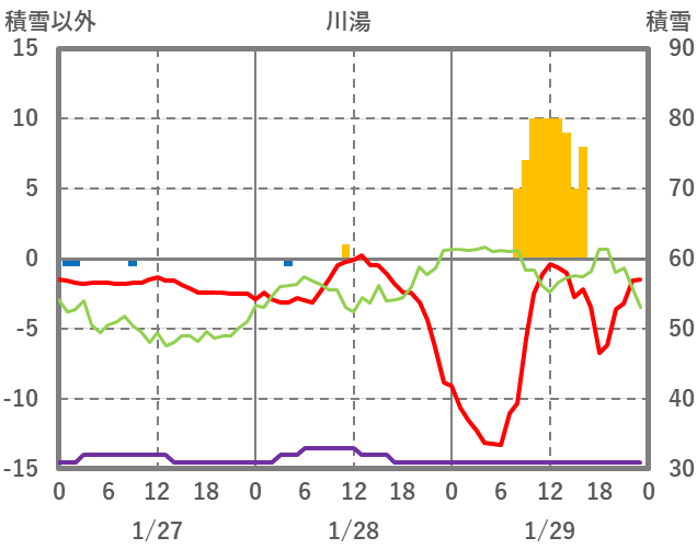 | 日 | 時 | 気温 | 降水 | 風向/風速 | 日照 | 積雪 | 降雪 |