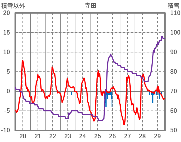 | 日 | 時 | 気温 | 降水 | 風向/風速 | 日照 | 積雪 | 降雪 |