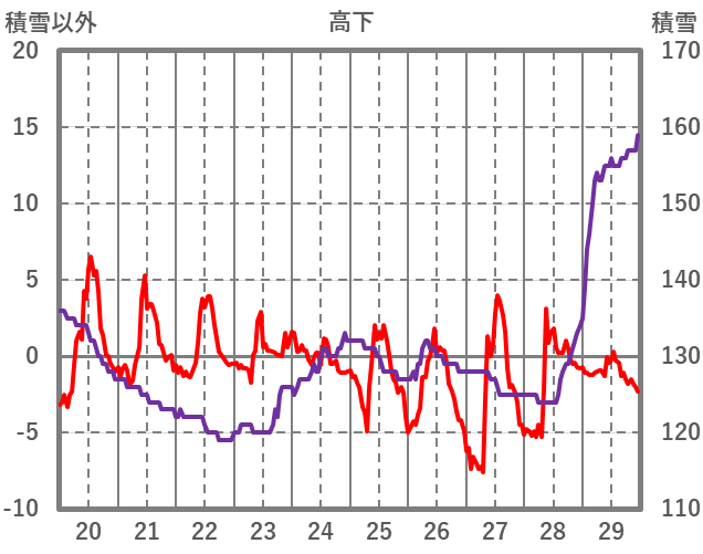 | 日 | 時 | 気温 | 降水 | 風向/風速 | 日照 | 積雪 | 降雪 |