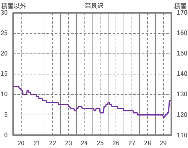 | 日 | 時 | 気温 | 降水 | 風向/風速 | 日照 | 積雪 | 降雪 |
