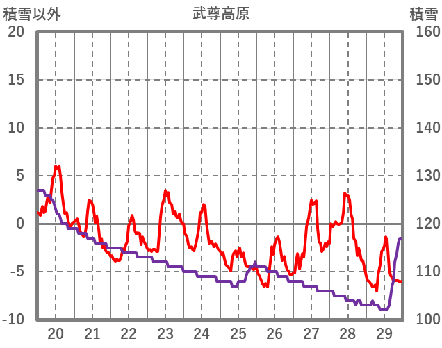 | 日 | 時 | 気温 | 降水 | 風向/風速 | 日照 | 積雪 | 降雪 |
