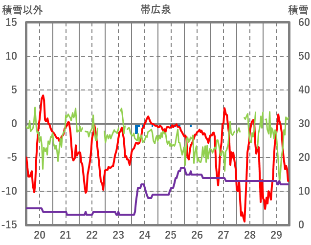 | 日 | 時 | 気温 | 降水 | 風向/風速 | 日照 | 積雪 | 降雪 |