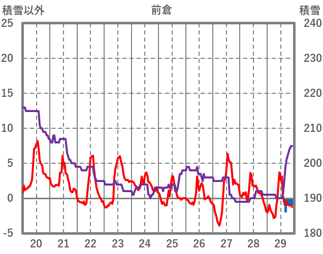 | 日 | 時 | 気温 | 降水 | 風向/風速 | 日照 | 積雪 | 降雪 |