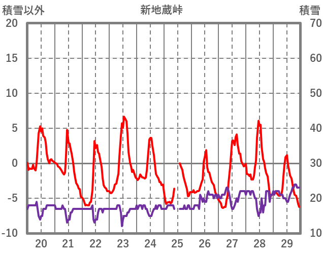 | 日 | 時 | 気温 | 降水 | 風向/風速 | 日照 | 積雪 | 降雪 |