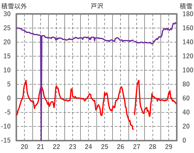 | 日 | 時 | 気温 | 降水 | 風向/風速 | 日照 | 積雪 | 降雪 |