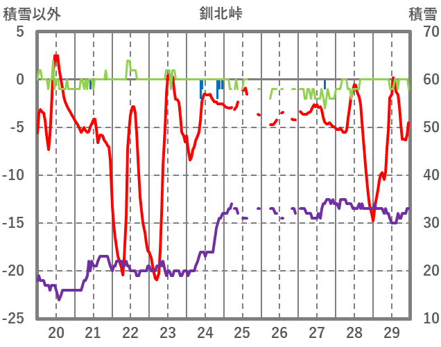 | 日 | 時 | 気温 | 降水 | 風向/風速 | 日照 | 積雪 | 降雪 |