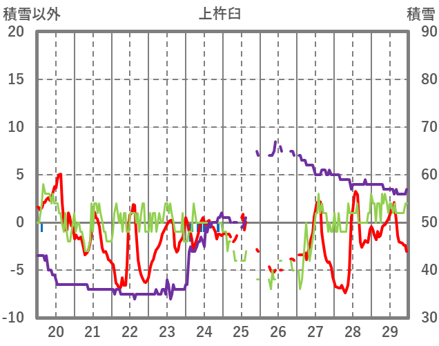 | 日 | 時 | 気温 | 降水 | 風向/風速 | 日照 | 積雪 | 降雪 |