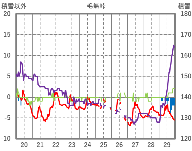 | 日 | 時 | 気温 | 降水 | 風向/風速 | 日照 | 積雪 | 降雪 |