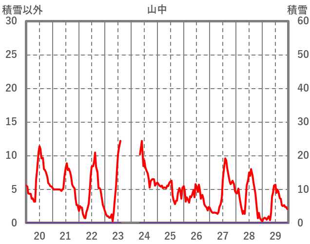 | 日 | 時 | 気温 | 降水 | 風向/風速 | 日照 | 積雪 | 降雪 |