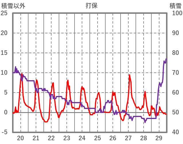 | 日 | 時 | 気温 | 降水 | 風向/風速 | 日照 | 積雪 | 降雪 |