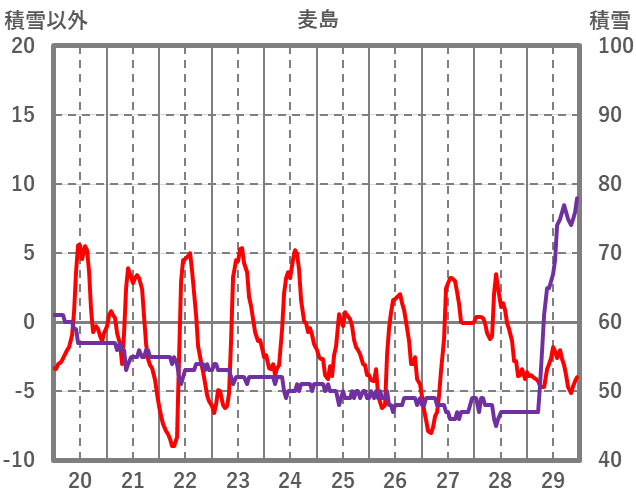 | 日 | 時 | 気温 | 降水 | 風向/風速 | 日照 | 積雪 | 降雪 |
