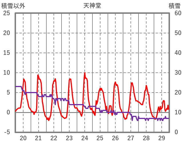 | 日 | 時 | 気温 | 降水 | 風向/風速 | 日照 | 積雪 | 降雪 |