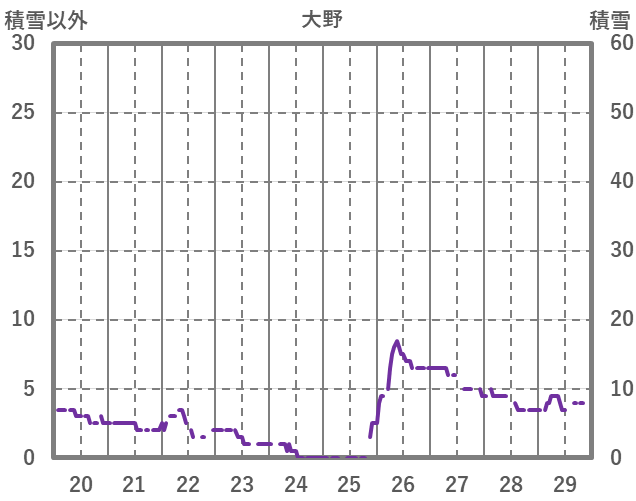 | 日 | 時 | 気温 | 降水 | 風向/風速 | 日照 | 積雪 | 降雪 |