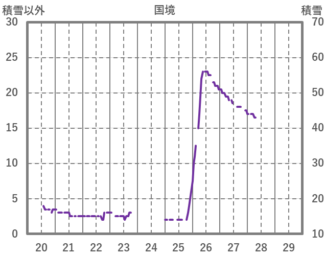 | 日 | 時 | 気温 | 降水 | 風向/風速 | 日照 | 積雪 | 降雪 |
