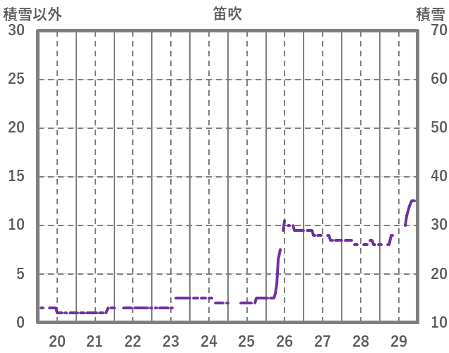 | 日 | 時 | 気温 | 降水 | 風向/風速 | 日照 | 積雪 | 降雪 |