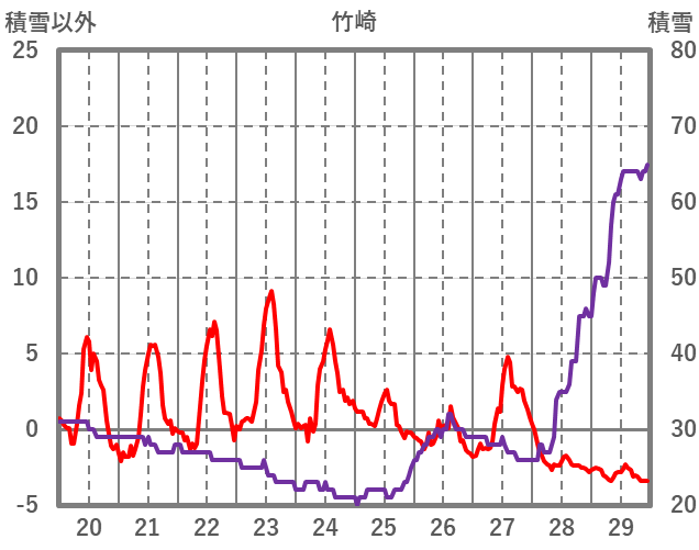 | 日 | 時 | 気温 | 降水 | 風向/風速 | 日照 | 積雪 | 降雪 |