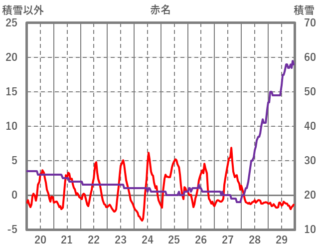 | 日 | 時 | 気温 | 降水 | 風向/風速 | 日照 | 積雪 | 降雪 |