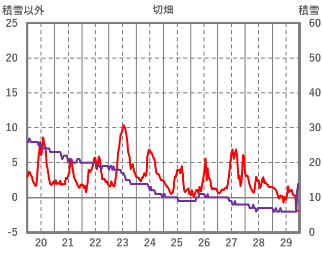 | 日 | 時 | 気温 | 降水 | 風向/風速 | 日照 | 積雪 | 降雪 |