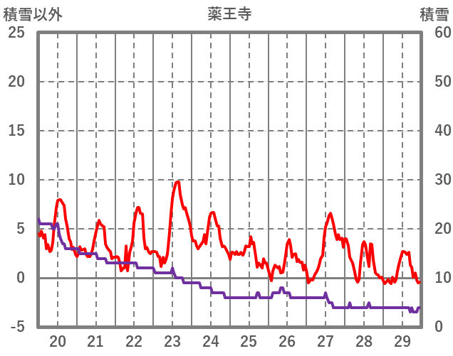 | 日 | 時 | 気温 | 降水 | 風向/風速 | 日照 | 積雪 | 降雪 |