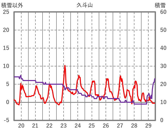 | 日 | 時 | 気温 | 降水 | 風向/風速 | 日照 | 積雪 | 降雪 |