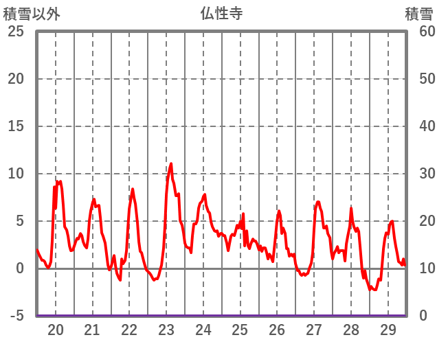 | 日 | 時 | 気温 | 降水 | 風向/風速 | 日照 | 積雪 | 降雪 |