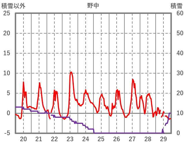 | 日 | 時 | 気温 | 降水 | 風向/風速 | 日照 | 積雪 | 降雪 |