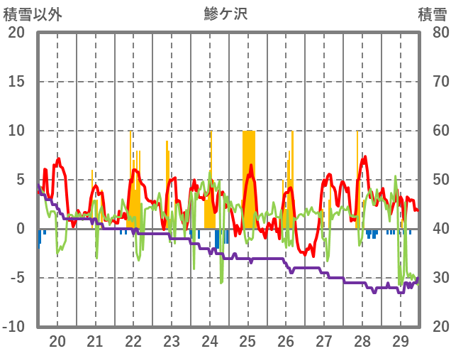 | 日 | 時 | 気温 | 降水 | 風向/風速 | 日照 | 積雪 | 降雪 |