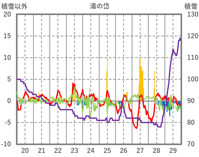 | 日 | 時 | 気温 | 降水 | 風向/風速 | 日照 | 積雪 | 降雪 |