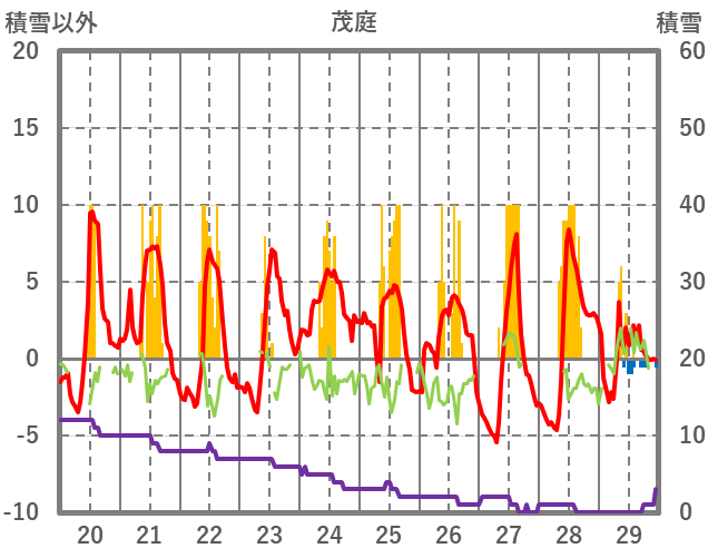 | 日 | 時 | 気温 | 降水 | 風向/風速 | 日照 | 積雪 | 降雪 |