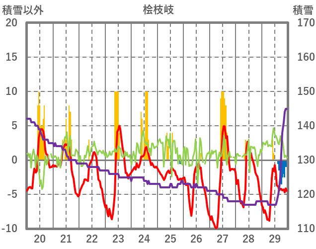 | 日 | 時 | 気温 | 降水 | 風向/風速 | 日照 | 積雪 | 降雪 |
