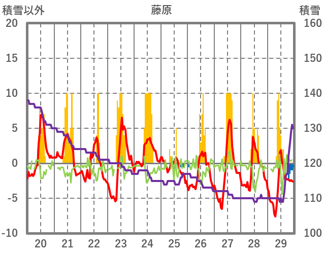 | 日 | 時 | 気温 | 降水 | 風向/風速 | 日照 | 積雪 | 降雪 |
