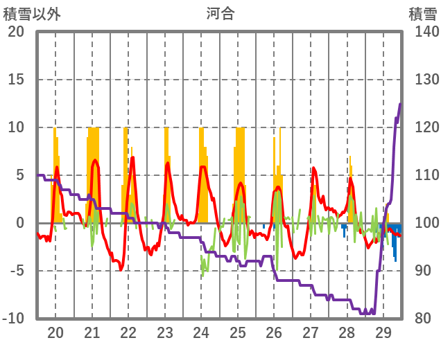| 日 | 時 | 気温 | 降水 | 風向/風速 | 日照 | 積雪 | 降雪 |